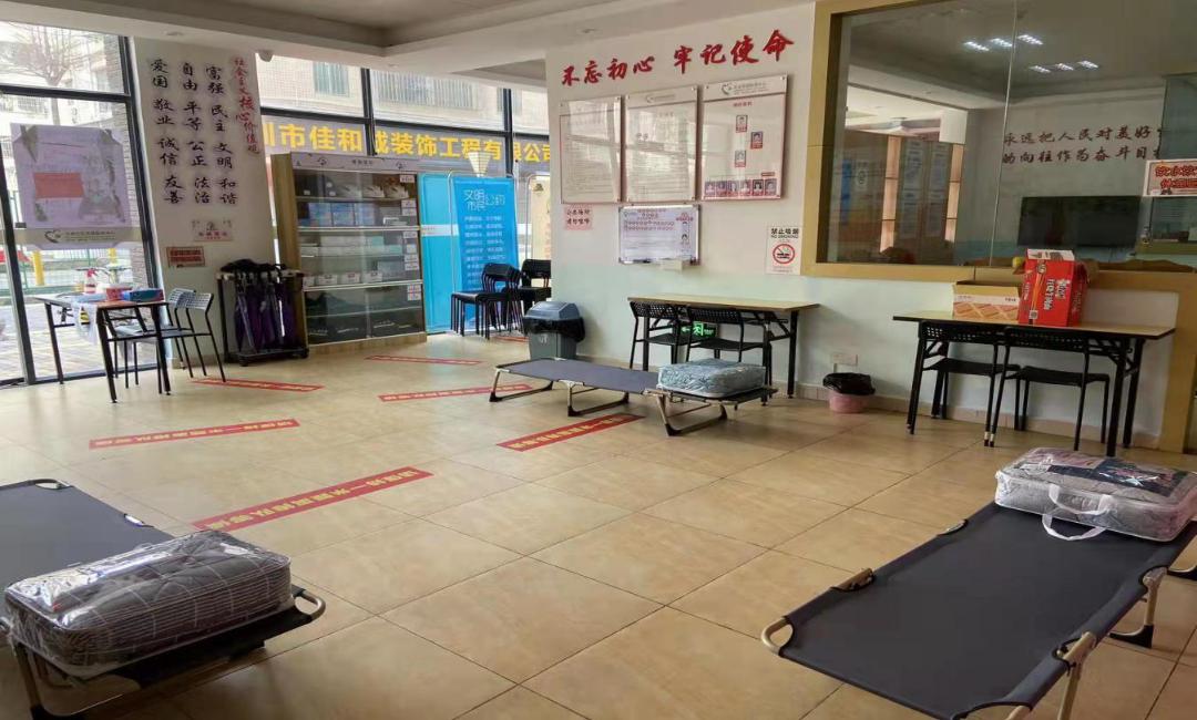 为减少人员聚集,辖区各党群服务中心转换为抗疫服务中心,在各党群中心内设置“抗疫先锋加油站”,布置休息区域,配备折叠床、饮用水、食品、充电设备及口罩、应急医疗包等防疫物资,供疫情防控工作人员、志愿者等休息使用。