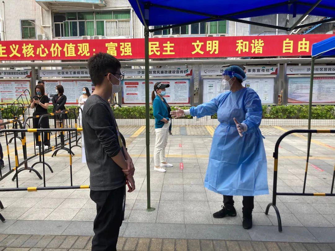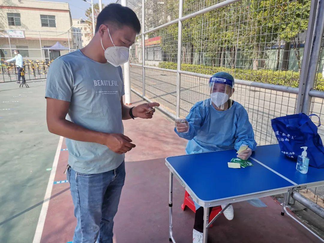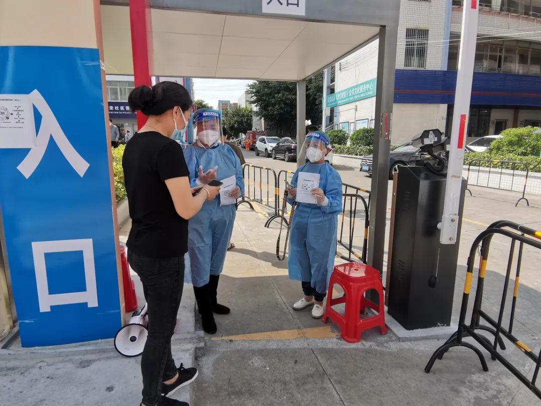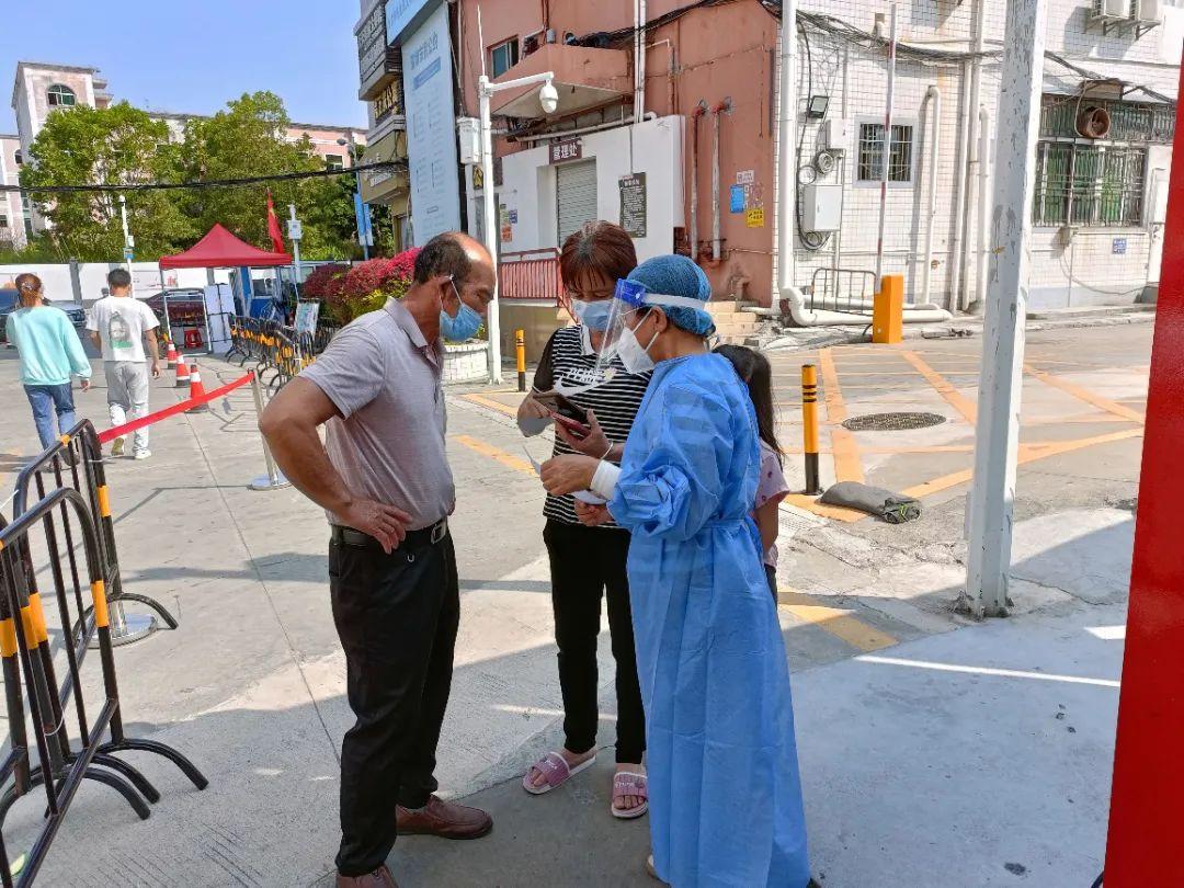 “您慢点,不要着急,提前准备好身份证和粤核酸码,保持一米距离,有序排队,很快就会轮到您!”