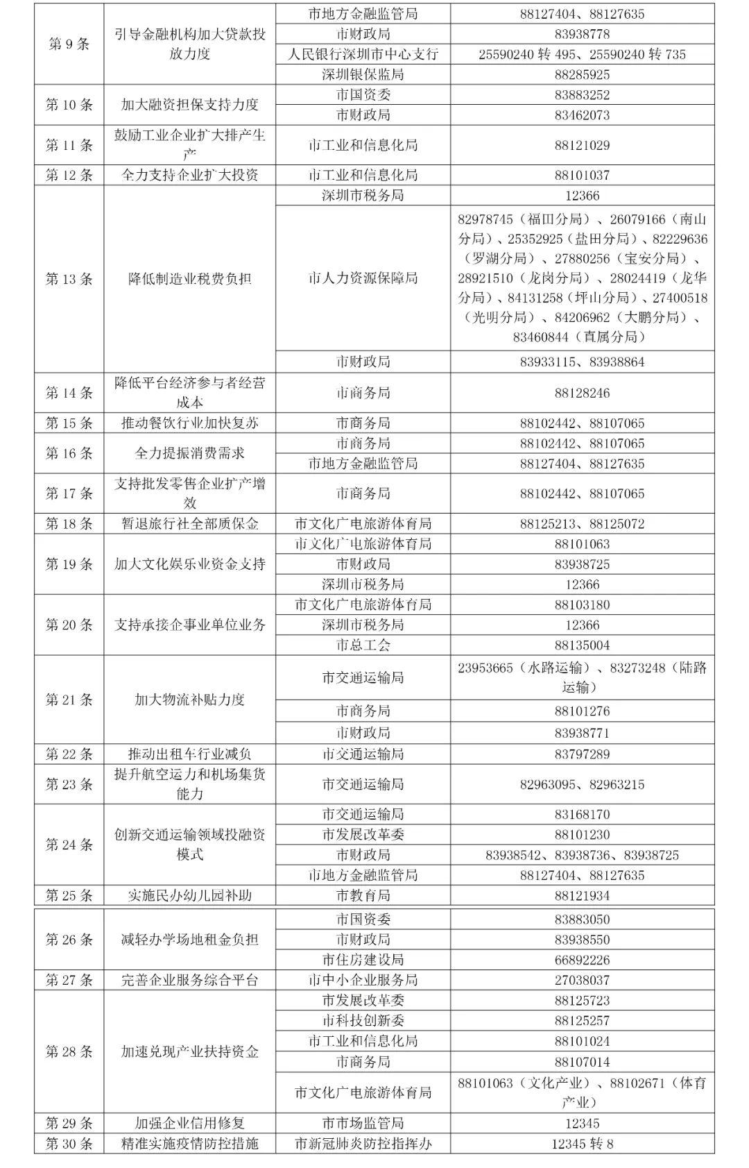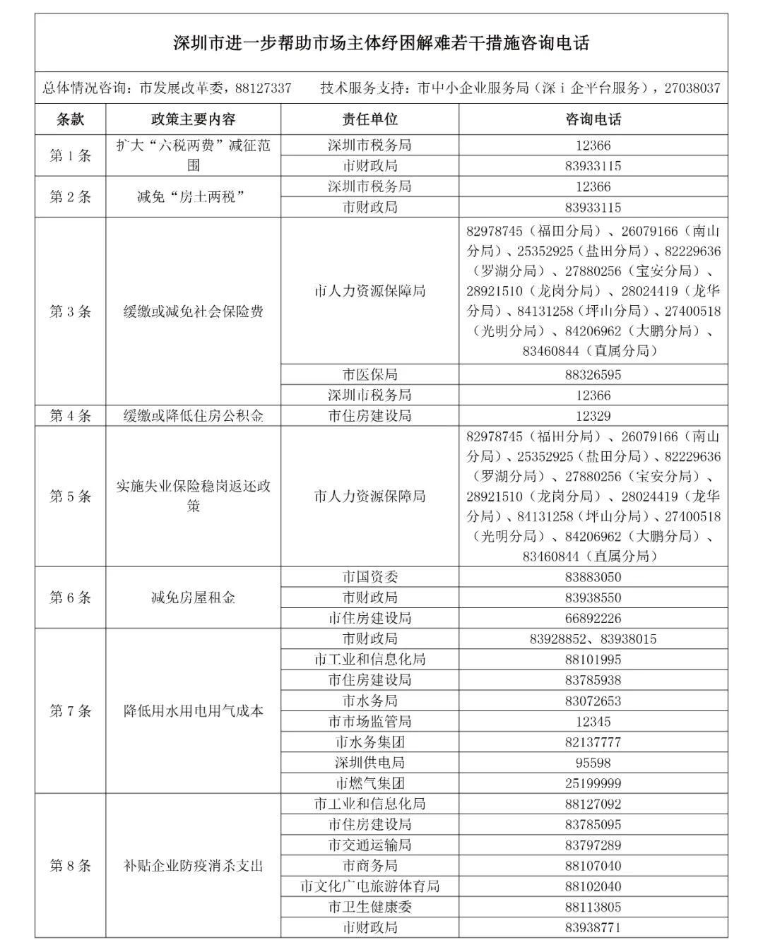 《深圳市关于应对新冠肺炎疫情进一步帮助市场主体纾困解难若干措施》已于3月25日正式发布,为方便广大企业和个体工商户了解政策细则、办理程序,现公布有关部门和单位具体咨询电话,欢迎来电咨询。