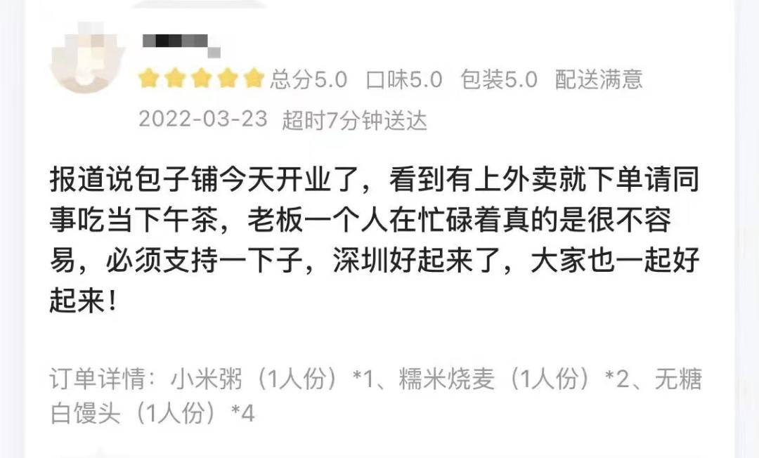 赖林远,90后的客家人,一家早餐店的店主,因疫情原因,店铺生意受到了一些影响。但随着深圳逐步恢复正常生产生活秩序,赖林远的小生意也逐渐回到正轨。3月22日,外卖平台联系上赖林远,免费为他在平台上开设了网店。开张第一天,他就收获了不少顾客的好评和留言,里面写满了加油和鼓励。