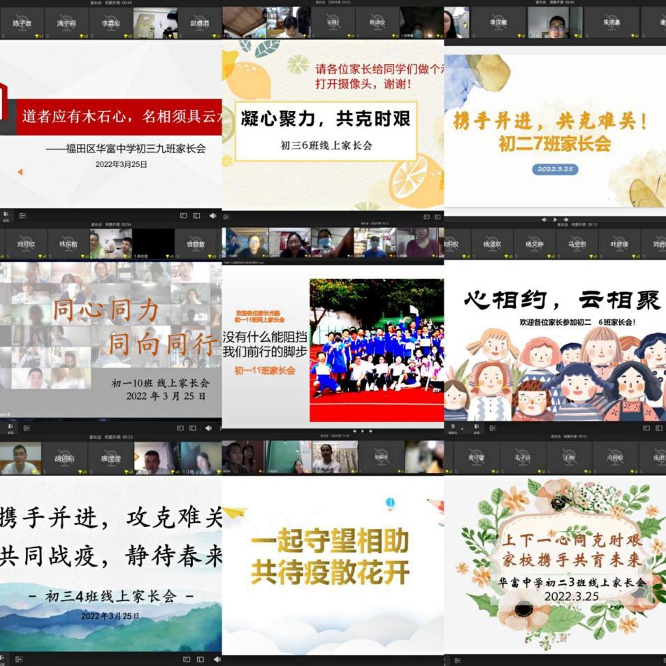 苏霍姆林斯基说:“完备的教育,是学校与家庭的合作”。为加强疫情期间学校与家长之间的沟通,凝聚家校教育合力,共促学生健康成长,华富中学于3月25日晚组织召开了线上家长会。会前,由学校政教处统一部署,召开全体班主任线上会议,要求班主任老师们根据目前疫情防控规定,指导学生们居家学习和个人防疫,总结一个多月以来学生线上学习的情况,给出居家学习建议,提醒家长关注学生的心理健康,针对年级班级特点召开家长会。