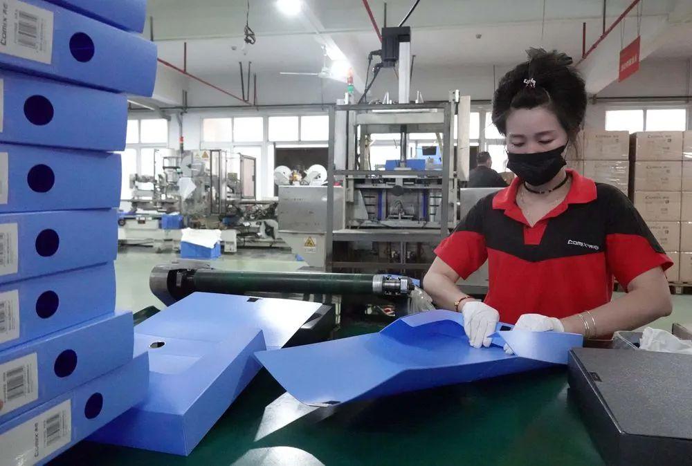 图为3月28日,深圳齐心集团股份有限公司工人在文件夹生产线上作业。新华社记者印朋 摄