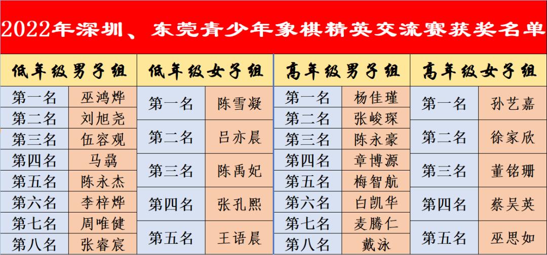 本次比赛高规格、高门槛,分设高年级男、女组,低年级男女组共4个组别;共吸引了深莞两地72名少年精英棋手报名参加。其中,多次获得省市级赛事名次的杨佳瑾、章博源、徐家欣、陈雪凝等小棋星均名列其中,赫然榜上。