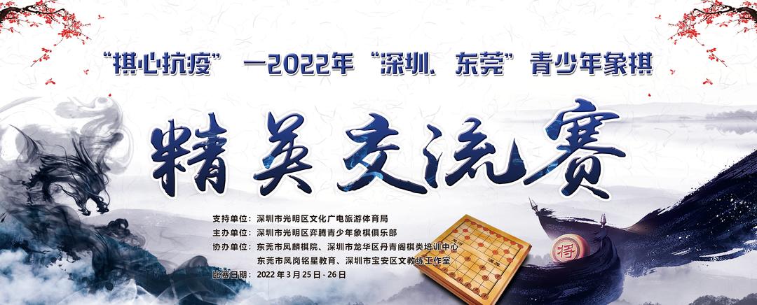 “疫瘴无情,象棋有爱”。2022年3月25~26日,在光明区文化广电旅游体育局的支持和指导下,由深圳市光明区弈腾青少年象棋俱乐部主办的“棋心抗疫”——2022年深圳、东莞青少年象棋精英交流赛于“天天象棋”平台(光明象棋社)顺利举行。