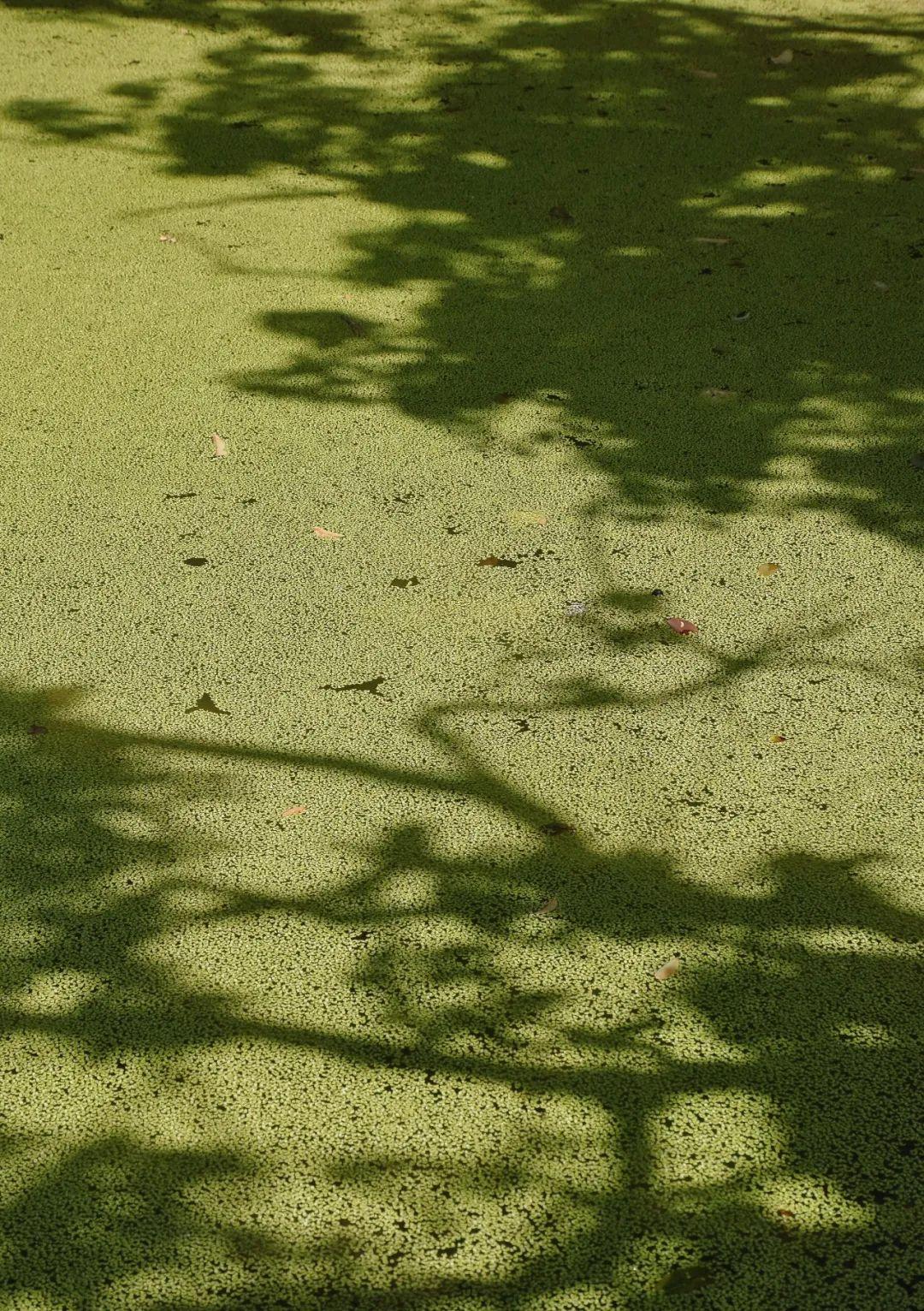 春天的一切都饱含生机,就连池塘,都蒙上一块绿幕,树荫掩映,光影绰绰。