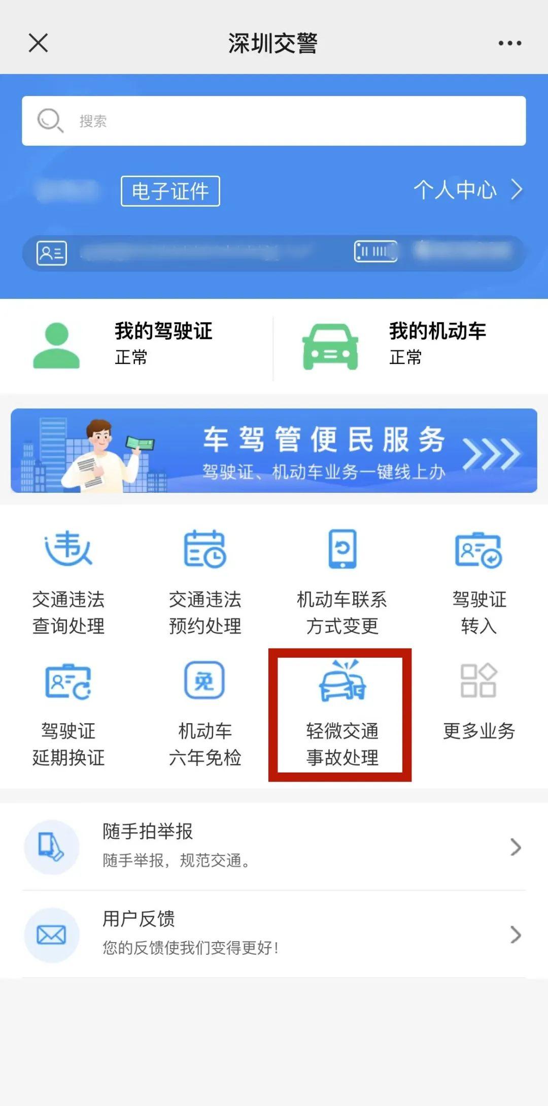 通过“深圳交警”“深圳交警权威发布”微信公众号,或“深圳交警”支付宝生活号进入“星级用户”。选择“轻微事故远程处理中心”,根据系统提示填写相关信息,接通视频后按工作人员指引操作。