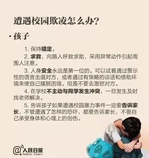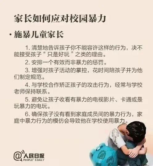 如果孩子情绪特别不稳定,一点小事就能引起很激烈的反应,如特别黏人、拒绝去学校、非常胆小怕人甚至有自我伤害倾向等,建议家长去学校了解情况。