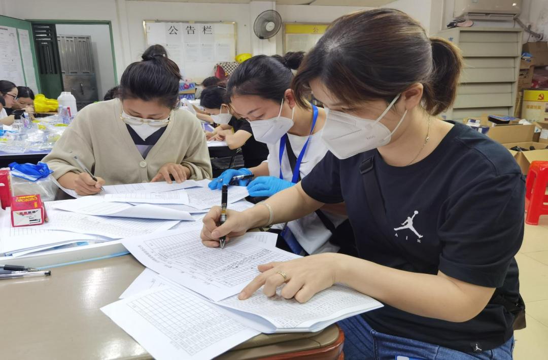 张紫红在核酸检测现场协助盖章