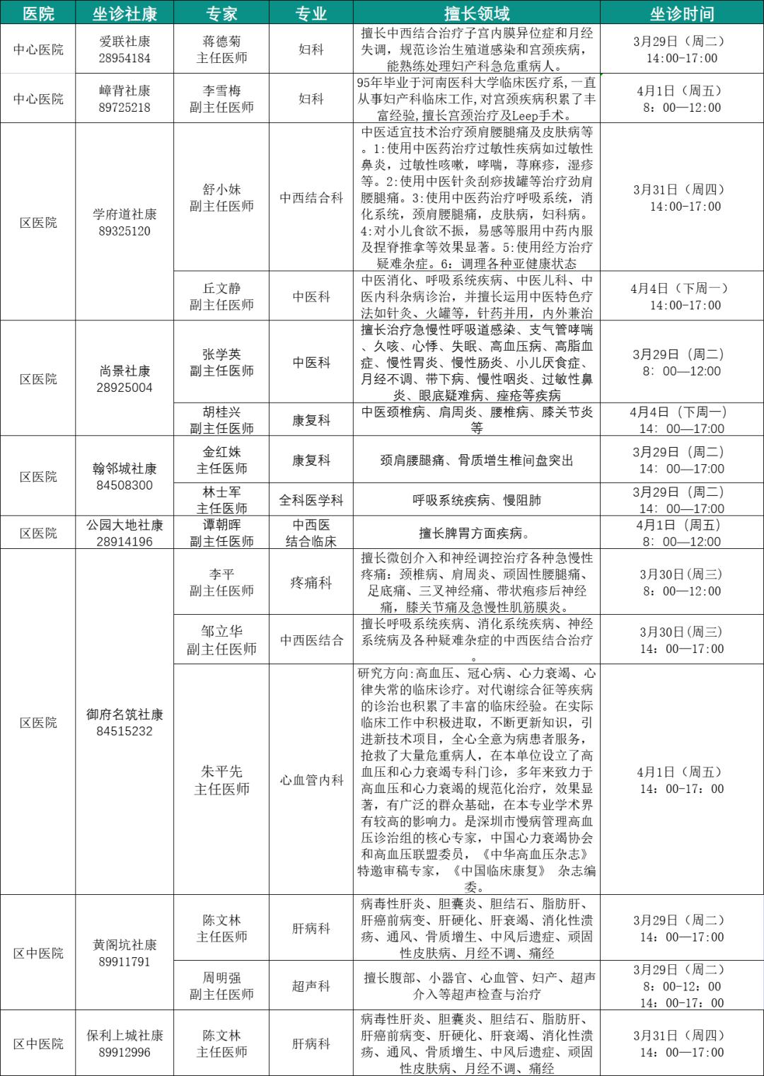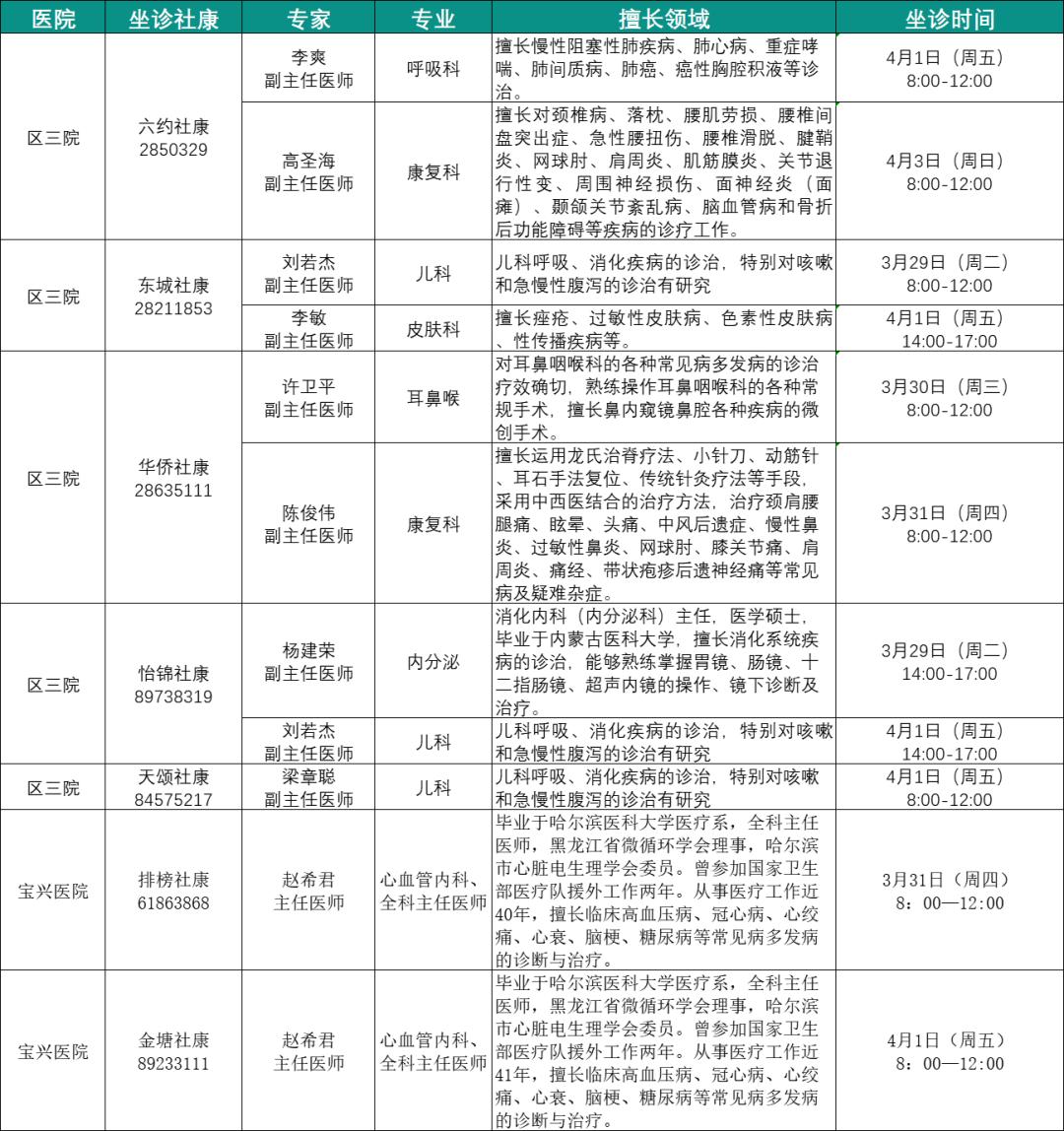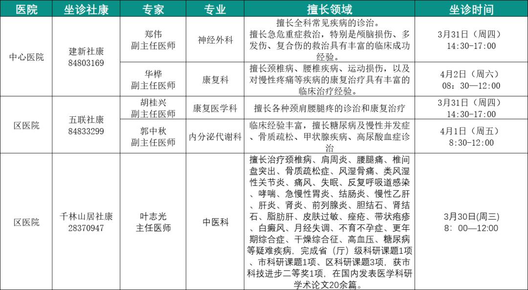社康坐诊专家