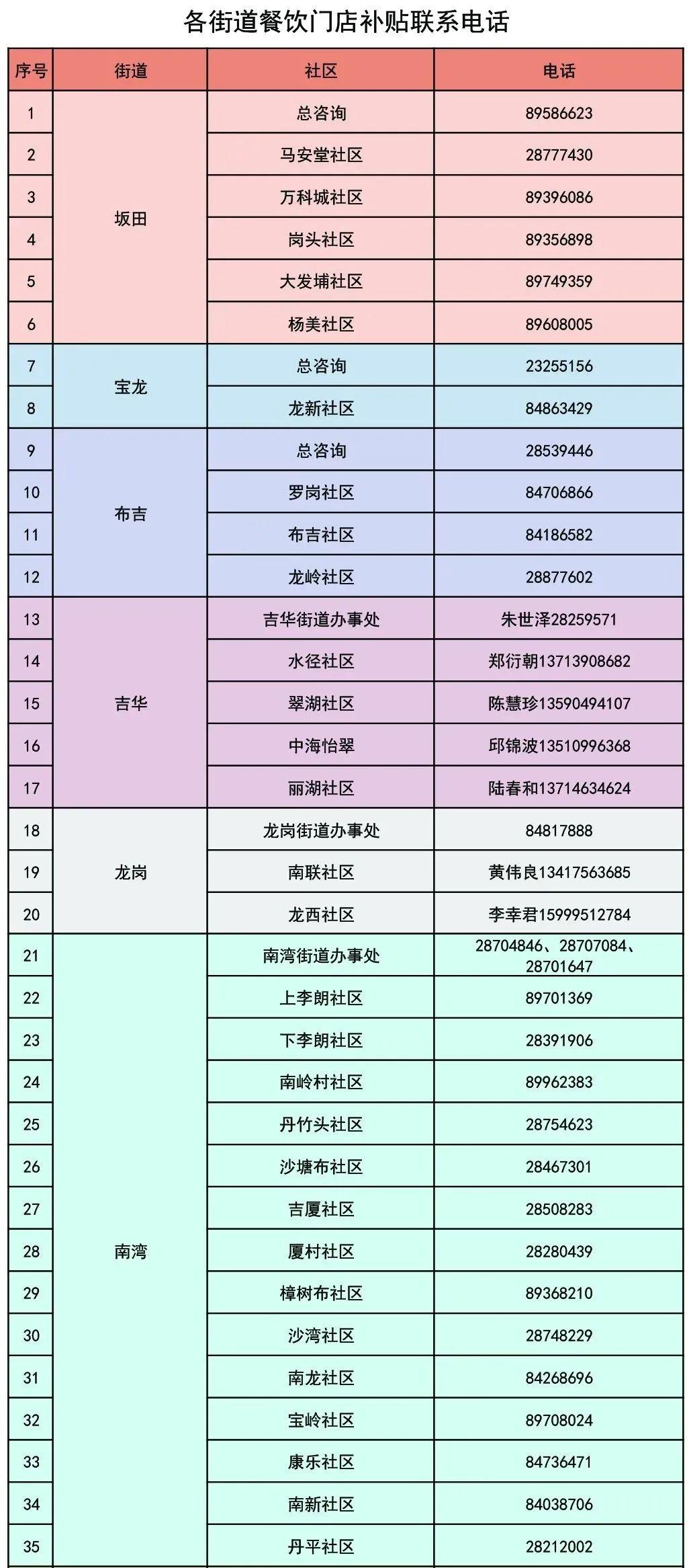 根据2022年3月25日印发的《龙岗区支持市场主体纾困稳定经济增长若干措施》第二条促进消费措施,“4.在龙岗区依法依规经营的餐饮门店,自2022年1月1日至2022年6月30日期间实际经营地曾被纳入封控区、管控区(含参照管控区管理的区域)范围内,经所在街道办核实后,给予每家门店1万元补贴。(办理方式:免申即享,责任单位:区工业和信息化局、各街道办)”