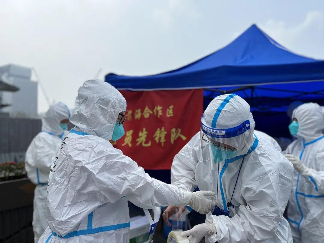 前海疫情防控领导小组(指挥部)每次都迅速深入一线、靠前指挥,在“三区”成立临时党总支和党员先锋队,协助街道和社区核酸检测、信息扫码、“扫楼”登记、物品配送等服务,支援一线抗疫。