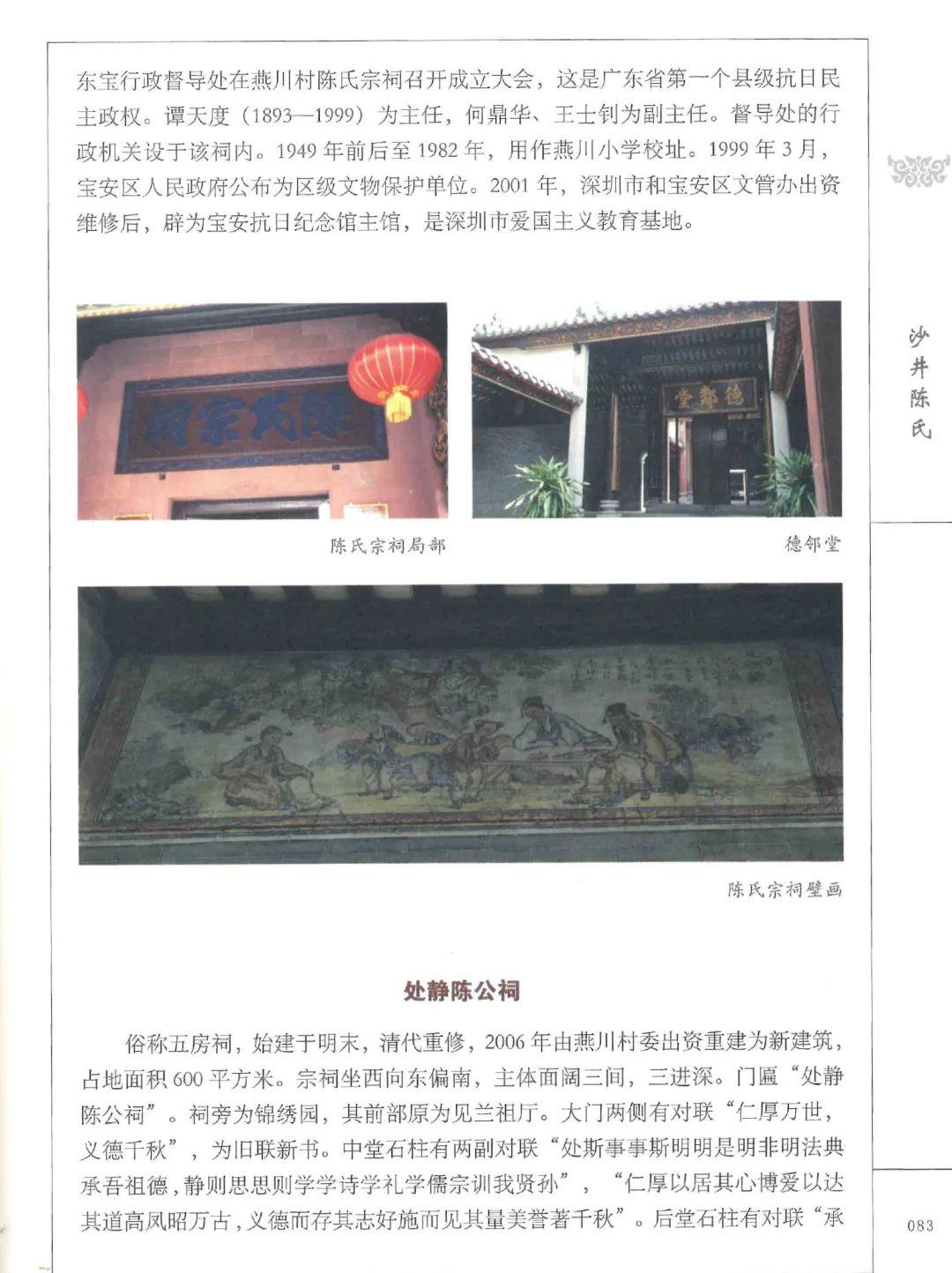宝安因地处边陲,家族祠堂在历次劫难中得以大量保存。据深圳市一些文史专家估计,在1980年之前,广府祠堂仍有大约500多座。散落在众多客家村落的祠堂也肯定多于这个数目吧。宝安地区祠堂,基本是在明朝万历之后才建立的,而保存至今的除了部分明洪武年间之后修建,后经重新修缮的之外,大部分则是清复界之后由移民家族建造的。与宝安县东部的客家宗祠相比较,西部的广府村落其立村时间较客家村落早。