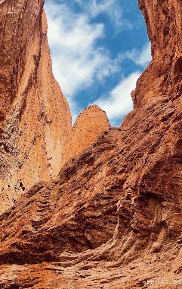 天山神秘大峡谷由红褐色的巨型山体群组成,又叫克孜利亚大峡谷,克孜利亚在维吾尔语里意为“红色的山崖”。谷中幽静清凉,峰回路转,时而宽阔,时而狭窄。谷底比较平坦,两侧是高耸的石壁,抬头仰望,在蓝天的映照下,奇峰异石千姿百态。