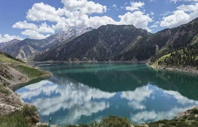 离库车约120公里的天山深处,有一大一小两个高山湖泊,就是大、小龙池。大龙池湖面宽阔,小龙池则犹如一颗晶莹的宝石,与大龙池相映生辉。山坡上青翠的植被,在雪峰的辉映下层层叠叠,使人心旷神怡。