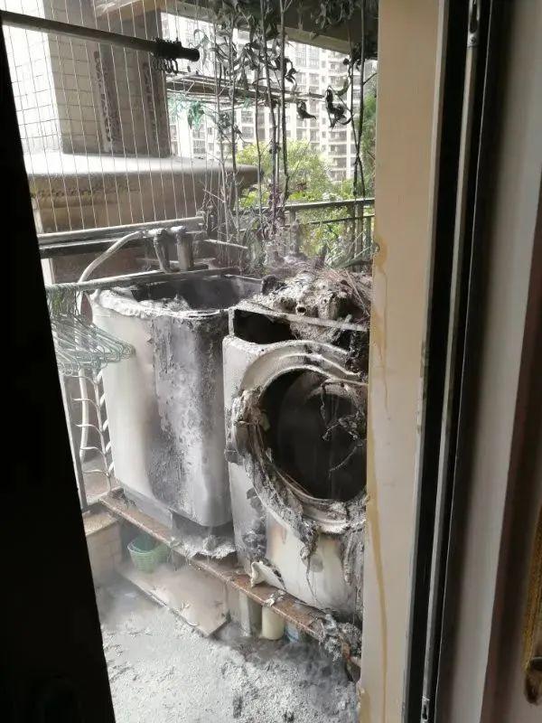 2020年4月5日,一住户的阳台发生起火,导致两台洗衣机均被烧毁。事后,经消防部门初步勘察,洗衣机着火正是因为空气潮湿引发线路短路,最终引起火灾。