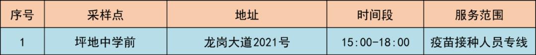 坪地彩云体育馆接种疫苗时间安排:3月30日(周三)下午3:00—晚上9:30;3月31日(周四)早上8:00—下午5:30;4月1日(周五)早上8:00—下午5:30;