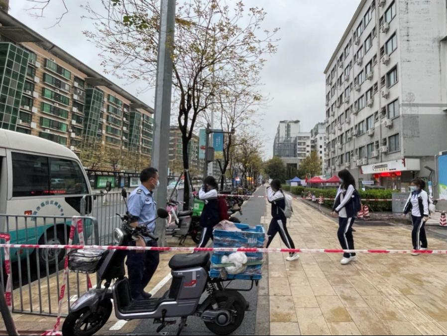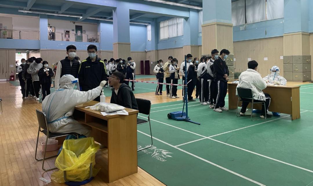 梅林中学在校师生600人左右,自封闭管理以来,严格按照市区教育局的指导文件进行核酸检测,返校后前三天每天一测,之后隔天一测。由于封闭管理人员有限,老师变身“大白 ”,帮助核酸检测医生扫码,用行动守护学生健康。