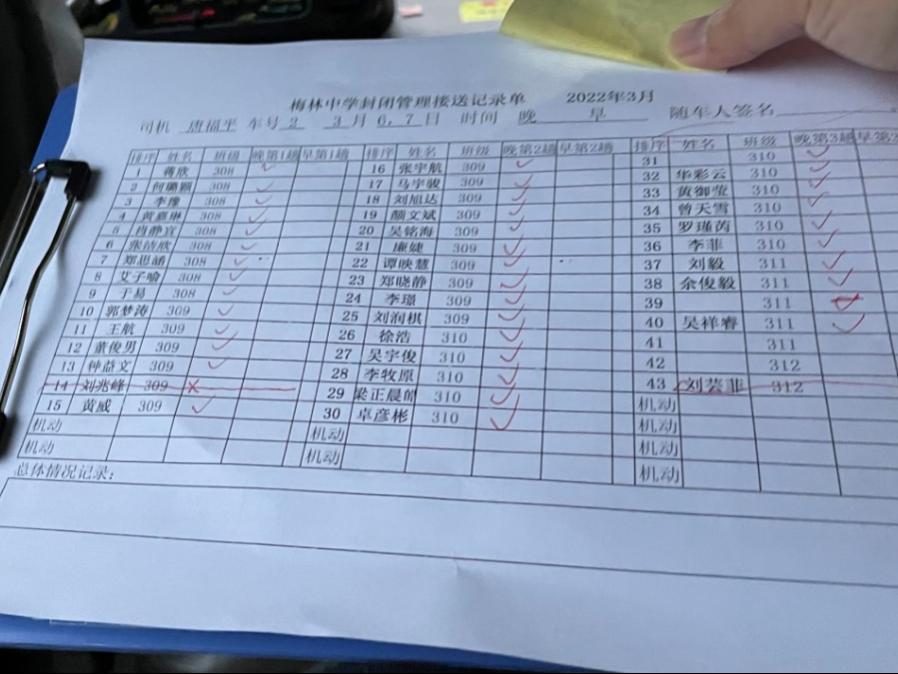 为了满足高三师生闭环管理的要求,学校启用校外可封闭管理的宿舍,安排校车定时、定人、定车每天早晚闭环接送。每趟车由值班校领导、中层干部和保安各三人护送,确保全线路闭环接送。
