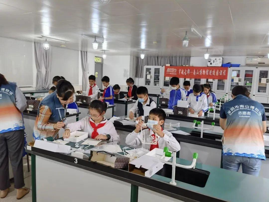 为贯彻落实教育部、国家文物局《关于利用博物馆资源开展中小学教育教学的意见》和深圳市教育局《深圳市义务教育阶段学校课后服务实施意见》,整合社会优质教育资源,充分发挥博物馆的宣传教育职能,积极构建丰富多元的育人模式,南山区文化志愿者协会、南山博物馆文化志愿者服务队联合策划实施“校园博课”项目,项目开展一年多以来,依托博物馆展陈先后走进九所中小学校、幼儿园,为学子们送去了丰富多彩的文化大餐。