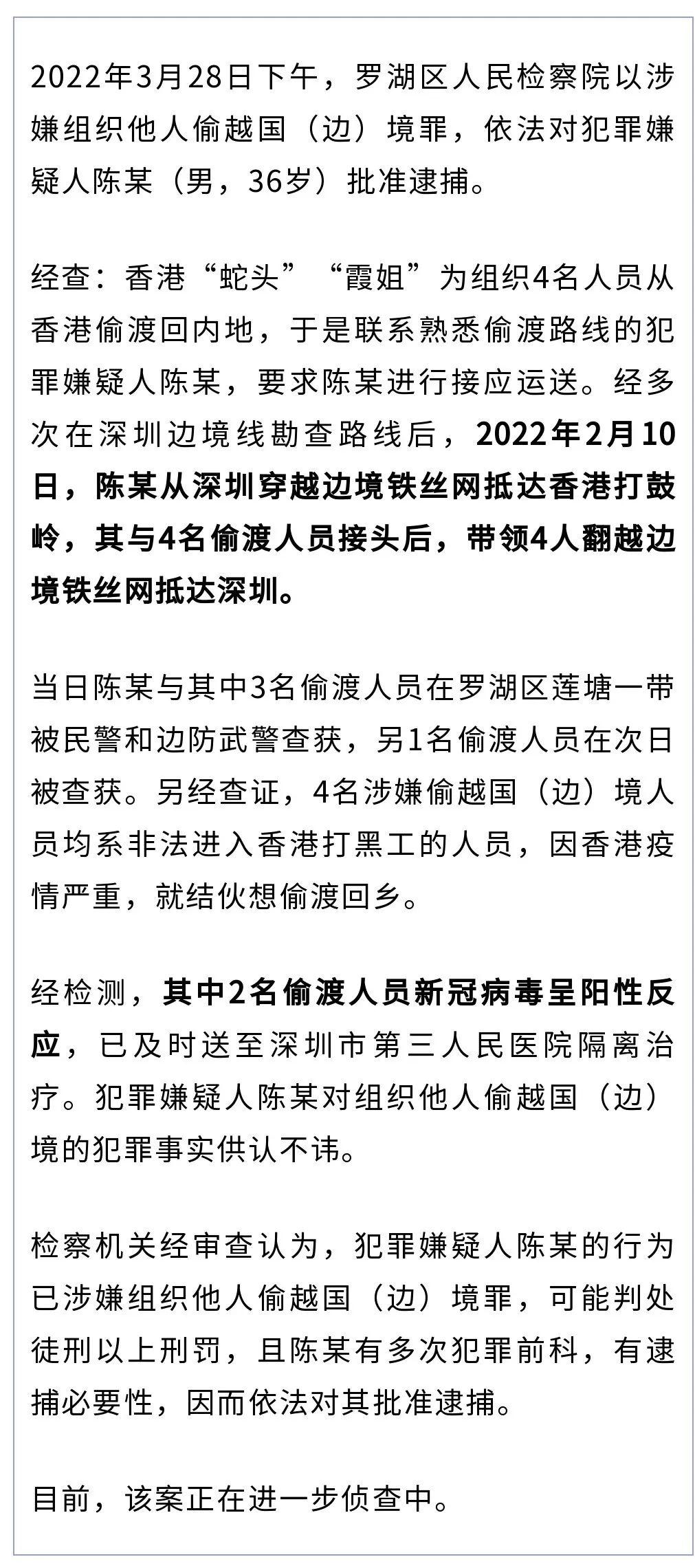 组织他人从香港偷渡入境,陈某被批准逮捕!