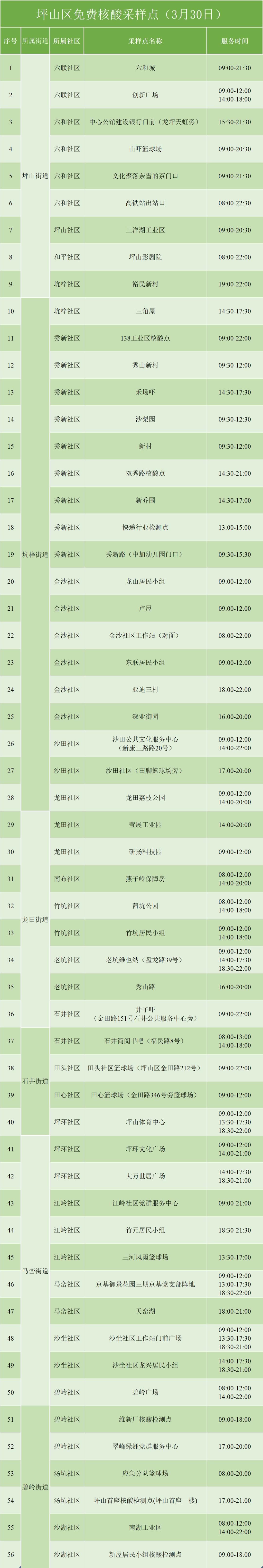 坪山免费核酸检测点名单在这里