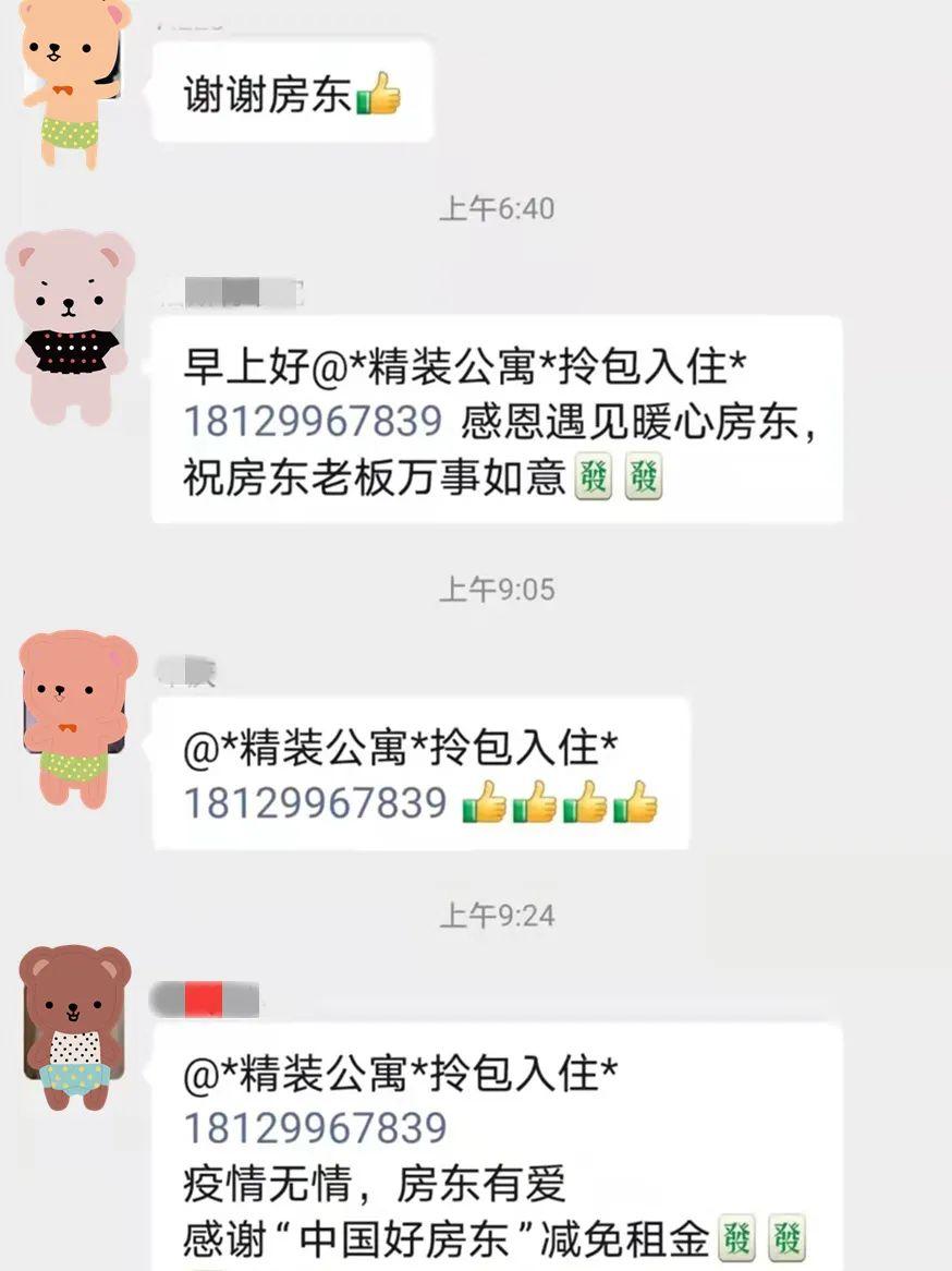 “疫情无情,房东有爱,感谢‘中国好房东’减免租金。”
