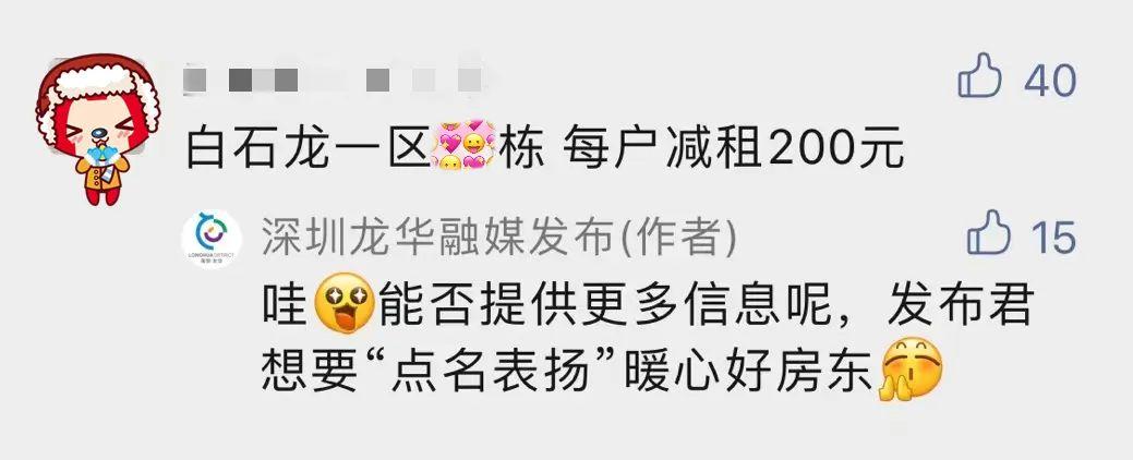 “深圳疫情之下,感谢大家积极配合防疫管控工作,为减轻大家的生活压力,本人决定为每户减免200元租金,希望大家继续严格遵守防控管理规定,我们携手抗击疫情。”