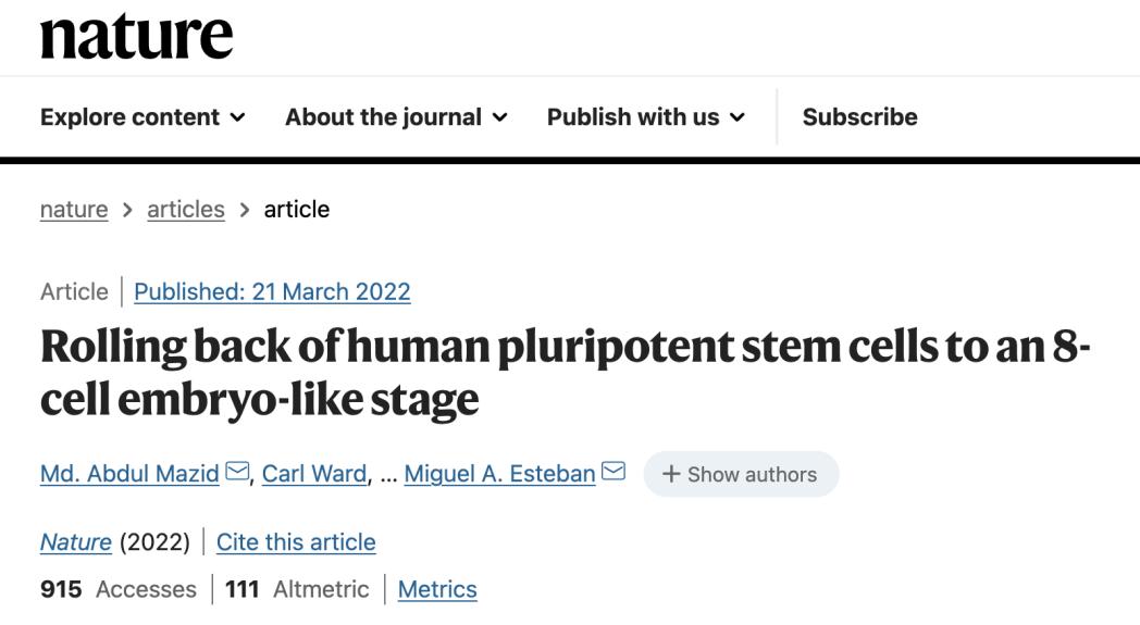 这是目前全球在体外培养的“最年轻”的人类细胞,是继科学家成功诱导出人类多能干细胞后,再生医学领域的又一次颠覆性突破,将有助于人类解开胚胎早期发育的密钥,也为未来使用患者本人细胞进行器官培养,并用于自身器官移植和替换,提供了科学依据。