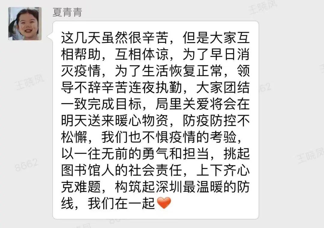 自从馆员们进入街道开展工作以来,福田区文化广电旅游体育局和图书馆办公室一直与一线志愿者保持密切联系,竭尽全力做好后勤保障。