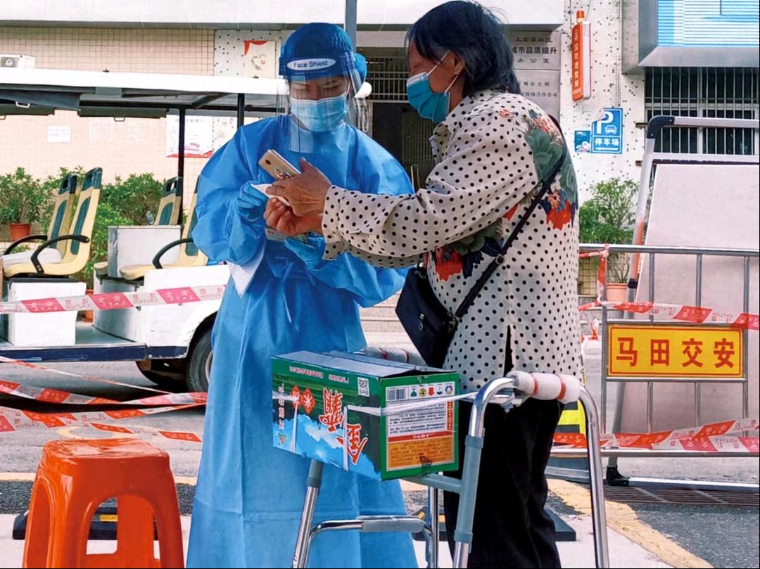于是,现在的我,似乎有了更大的勇气,站出来抵抗病毒的侵扰,筑起新冠与居民之间的防线。参与社区网格员进行流调,打电话提醒居民下楼做核酸。在一次次核酸检测现场维持秩序,引导人们排队,协助大家打开核酸码以及扫码登记人员信息,积极做好自己的工作,为疫情防控奉献出一份自己的力量。在抗击疫情的路上,我从未停歇,现累计抗疫服务时长达187小时,我所做的,只是无数志愿者中的一小部分,但感受的,却是整个深圳的温暖和强大。松山湖告急,致使我开启网课生活,一边是我生长的土壤,一面是我热爱的土地,它们现在都处于水深火热之中,当然!我也不能停下,加速了抗击疫情的步伐,社区大规模核酸检测点、牌坊门口查验健康码、社康协助疫苗接种等等,尽我所能,保护着,守卫着。很荣幸,我也可以有资格站出来守护我的城市。保安叔叔和保洁阿姨们戴上手套、穿上防护服,在疫情防控下积极适应新的工作模式,每一个抗击疫情的人,都值得一枚勋章,那是对生活的热爱、对病毒发出的挑战,也是对考验的迎接。每天都有无数温暖的故事发生,一句“辛苦啦!”“谢谢你!”便是我无尽的动力,每一代人都有自己的时代使命和责任,我想,我们这一代青年是在国家社会有需要之时冲在第一线,走在最前头!加入志愿军,走上抗疫路,很荣幸,不后悔!