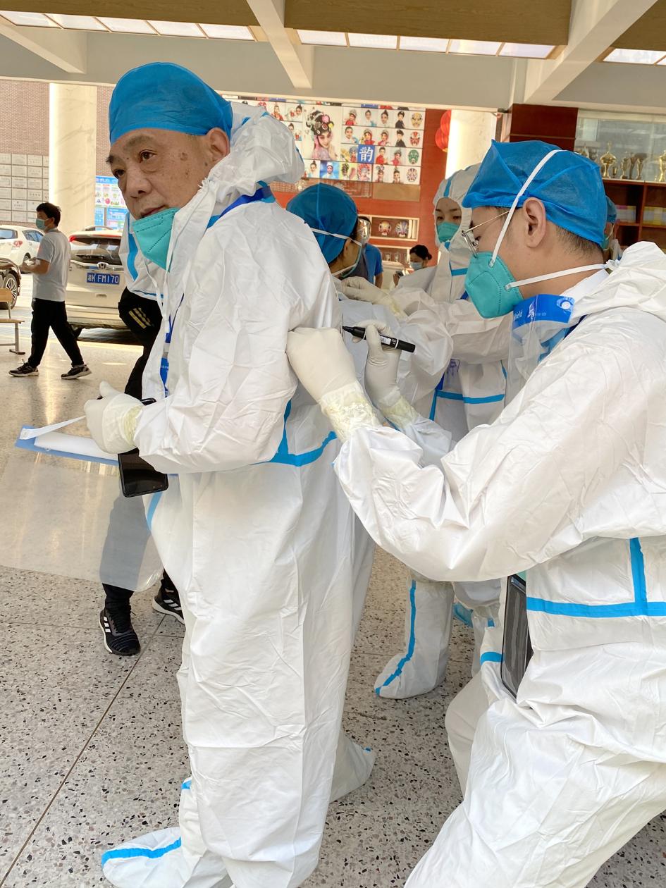 昔日讲台上温文尔雅的教育工作者,穿上了“大白”防护服进驻沙埔头管控区、封控区,为确保沙埔头社区9000余人应检尽检、应检必检、不漏一人,教师“大白”在各楼层里穿梭,衣服湿了又干。日复一日的扫楼、测核酸、守楼、送物资,传递抗疫正能量。福田区实验教育集团侨香学校教师黄瀚到达沙埔头第三天神经性耳鸣复发,只稍作调整休息后,继续坚持上岗。