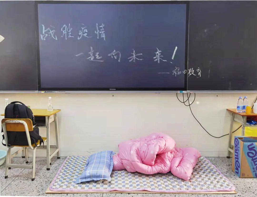疫情就是命令。由于事发突然,志愿者进驻当天,南园街道沙埔头社区抗疫指挥部同步组建,后勤保障还在完善中。宿舍安排、床铺安装,热水器加装……伴随着 “叮叮咚咚”的声音,福田教师志愿者团队在校园安置下来。教室里摆放着上下铺铁床,洗手间临时改造成浴室,这里成为教师志愿者们整装待发的阵地、休憩的加油站。