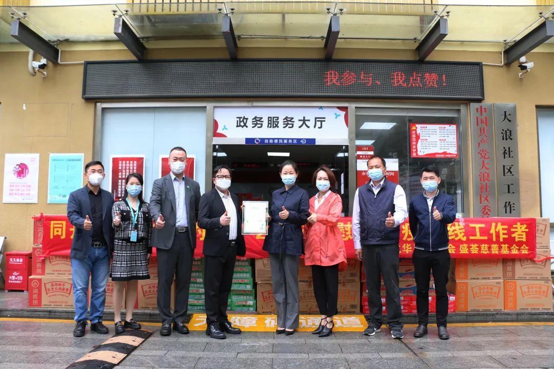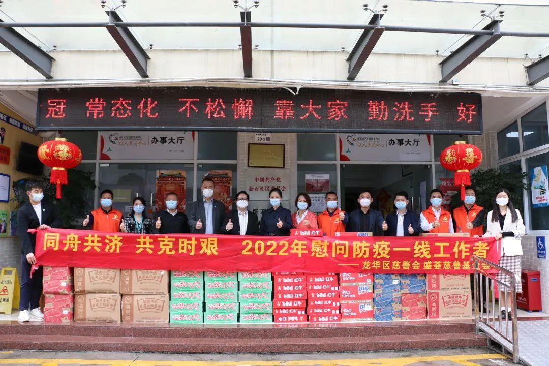 3月25日上午,龙华区民政局、龙华区慈善会联合盛荟慈善基金会开展一线防疫工作者慰问活动,为龙华区大浪街道大浪社区、新石社区捐赠总价值6万元的生活物资一批。区政府党组成员、副区长赵妍妍,区社会事务服务中心副主任钟燕,大浪街道相关负责同志、社区相关负责同志、区慈善会秘书长刘会峰、盛荟集团董事长何伟文、总裁辛会波参加了慰问活动。