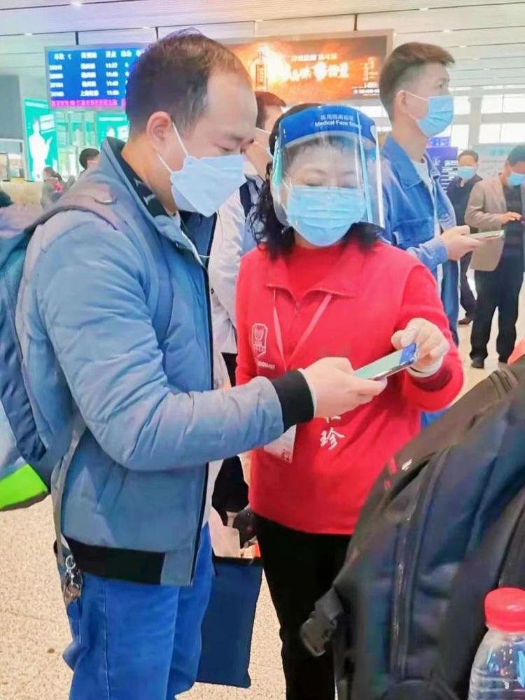 陈桂珍作为坪山高铁站U站义工队长,每天带领义工团的志愿者做好各项安排之外,自己也冲在疫情志愿服务一线,常常一站就是三、四个小时,坚守防控一线。
