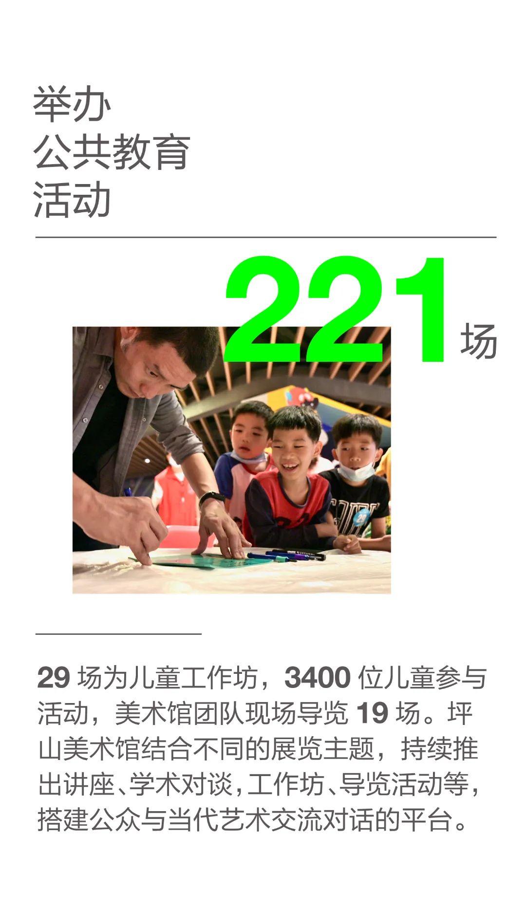 坪山美术馆不仅持续举办重要的国内外艺术展,倡导高质量的跨界,建立艺术、建筑和设计的连接点,而且以多种形式的学术活动与公共美育,立足坪山在地文化的现实情境,与时代脉搏相共振,强调跨学科、区域和国际对话,着力推动美术馆在当代文化现场的价值建构和文化塑造。推出数字美术馆,通过线上虚拟展示和线下实境增强的形式丰富观众体验与品牌输出。2020年和2021年,坪山美术馆连续两年入选专业媒体评出的国内当代美术馆前十名榜单。