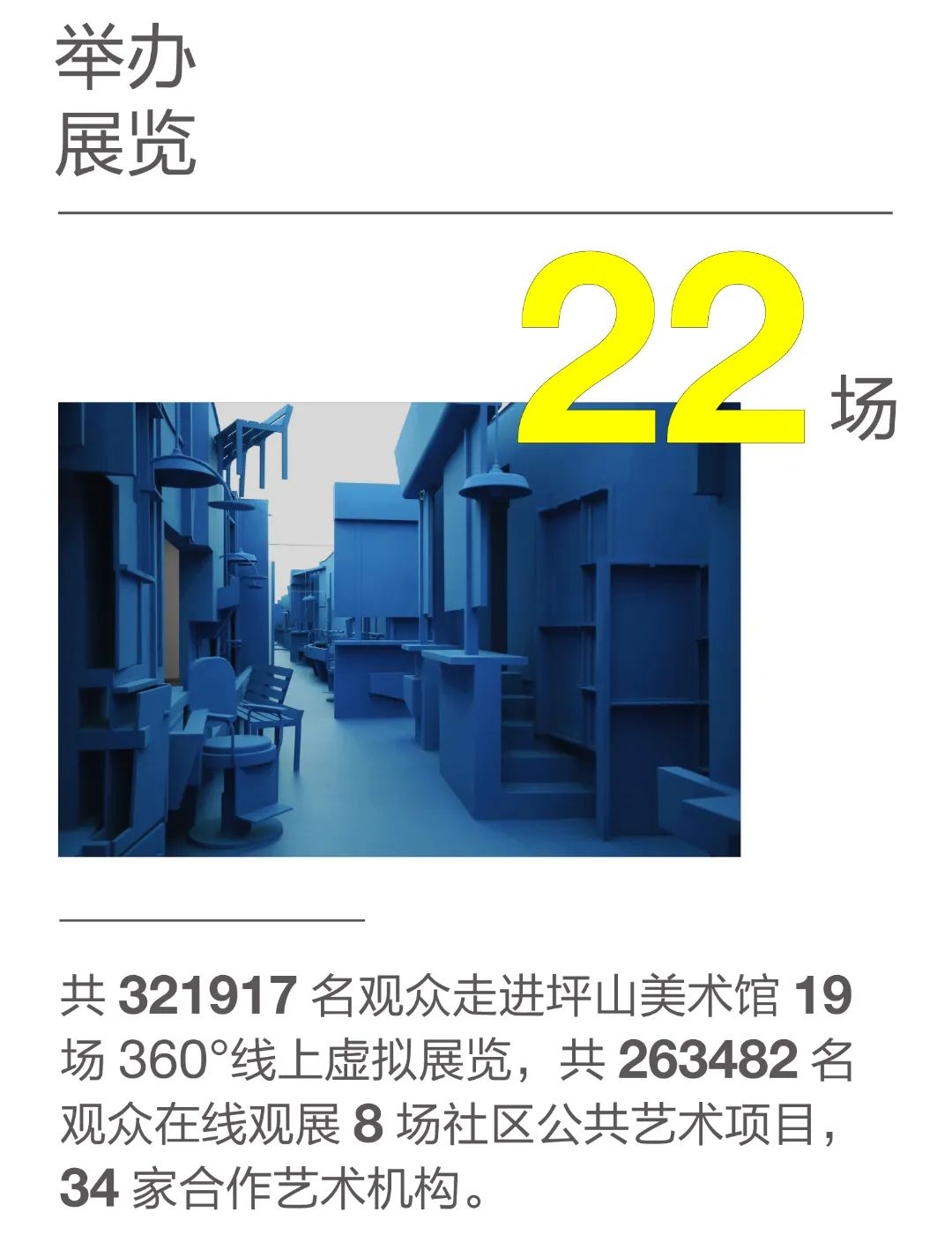 坪山美术馆不仅持续举办重要的国内外艺术展,倡导高质量的跨界,建立艺术、建筑和设计的连接点,而且以多种形式的学术活动与公共美育,立足坪山在地文化的现实情境,与时代脉搏相共振,强调跨学科、区域和国际对话,着力推动美术馆在当代文化现场的价值建构和文化塑造。推出数字美术馆,通过线上虚拟展示和线下实境增强的形式丰富观众体验与品牌输出。2020年和2021年,坪山美术馆连续两年入选专业媒体评出的国内当代美术馆前十名榜单。
