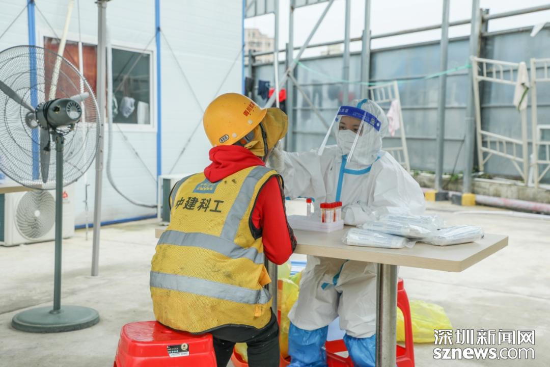 记者在现场看到,施工区内,施工人员按要求佩戴好口罩,分时分组上岗作业;生活区内,设有核酸采样检测点,400余名工作人员按要求有序排队,完成当天核酸采样检测。