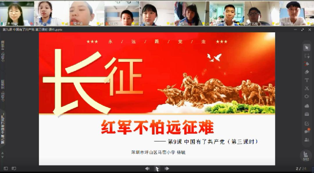 马峦小学教师杨毓执教在线公开课《红军不怕远征难》,全市6000多名教师同步收看,点赞次数达3.5万。
