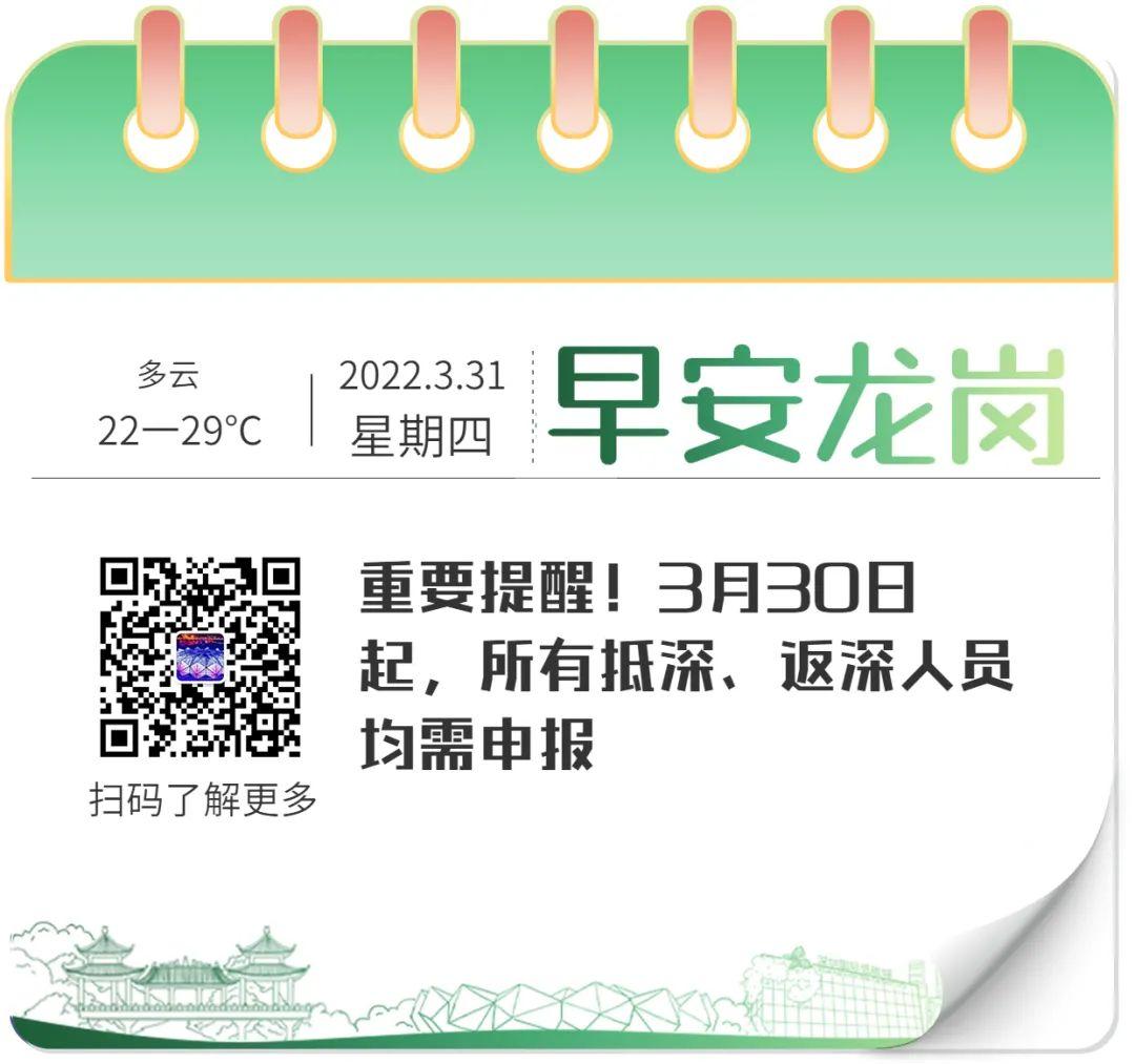 根据深圳市疫情防控要求,3月30日起,所有抵深、返深旅客均需要在微信小程序“深i您”进行行程申报。详情点>>>
