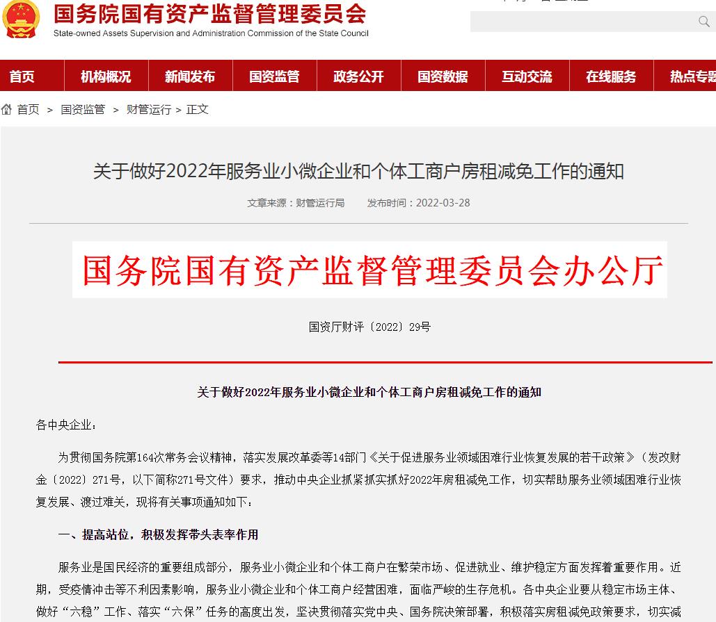 国资委办公厅3月28日发布通知对此进行落实,要求普遍减免3个月租金工作要力争在上半年实际完成主体工作,补充减免3个月租金工作要在列为中高风险地区后2个月内完成。