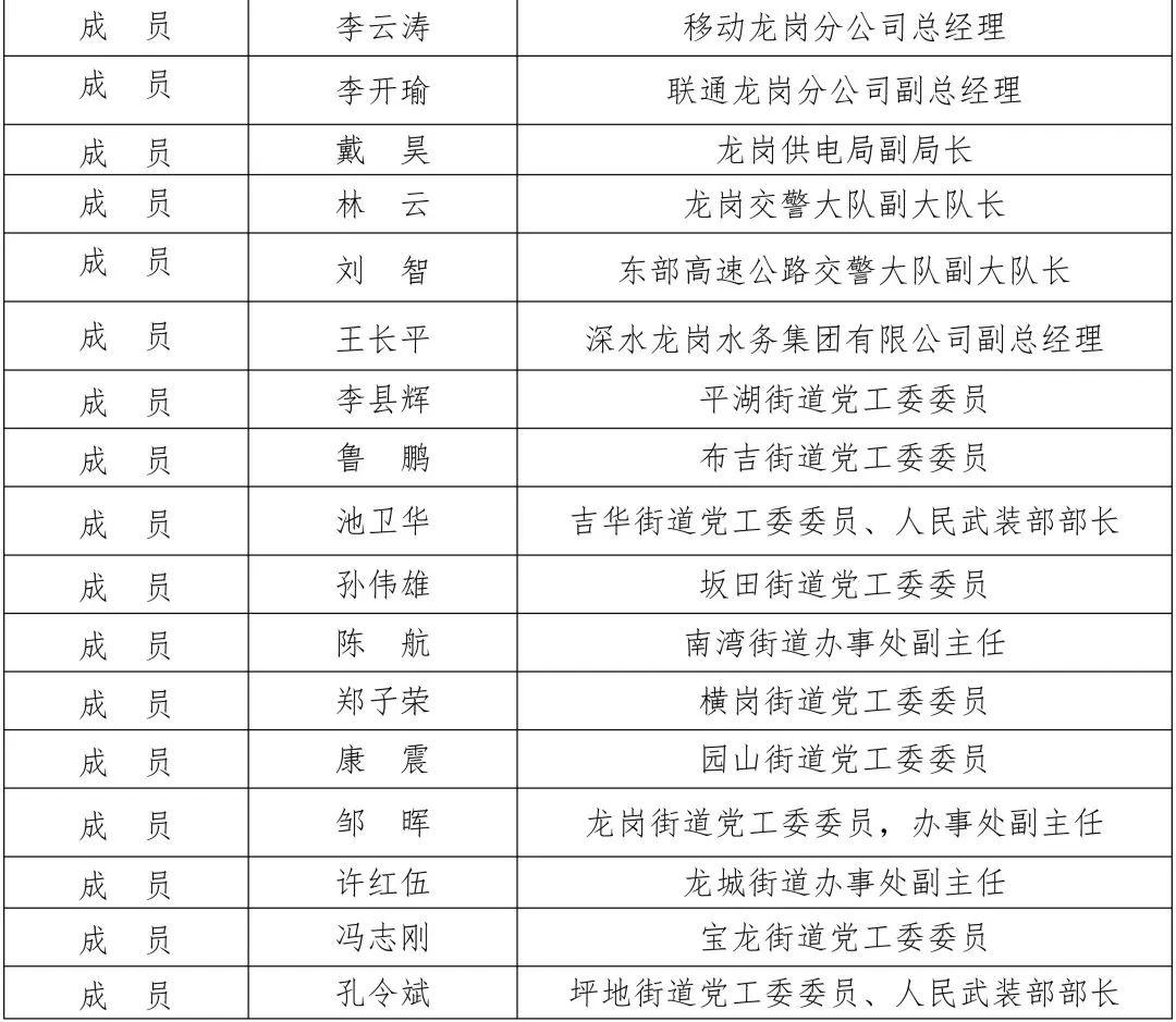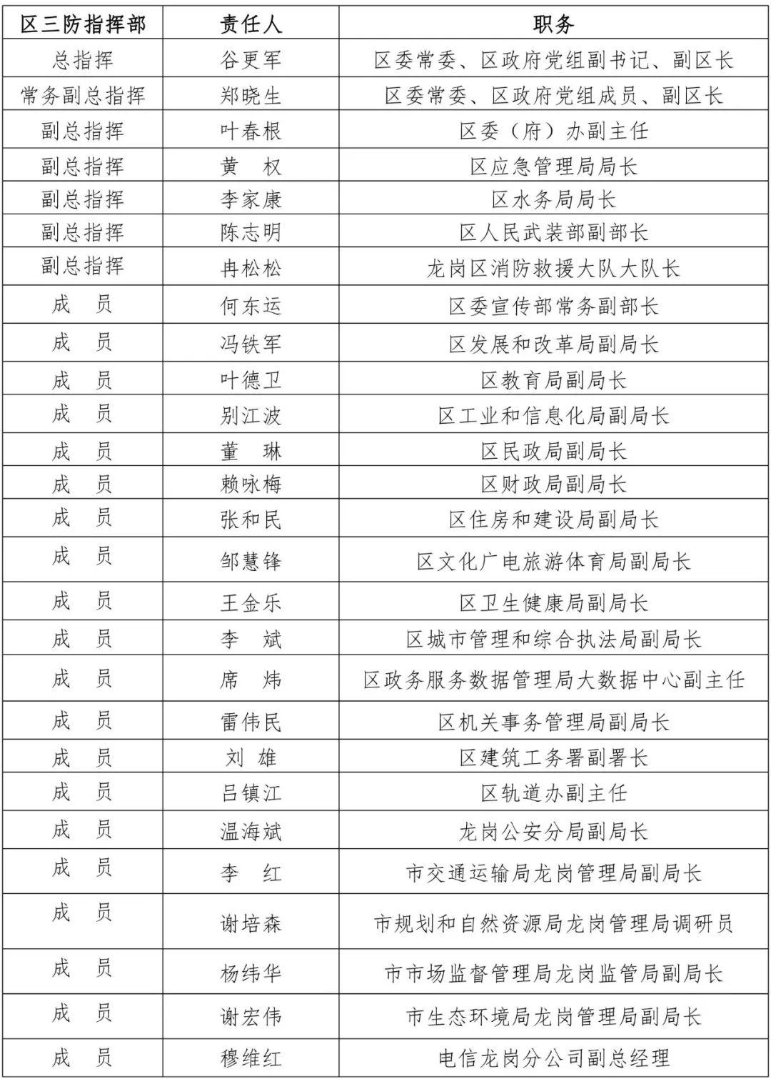 龙岗区防汛防旱防风指挥部领导及成员名单