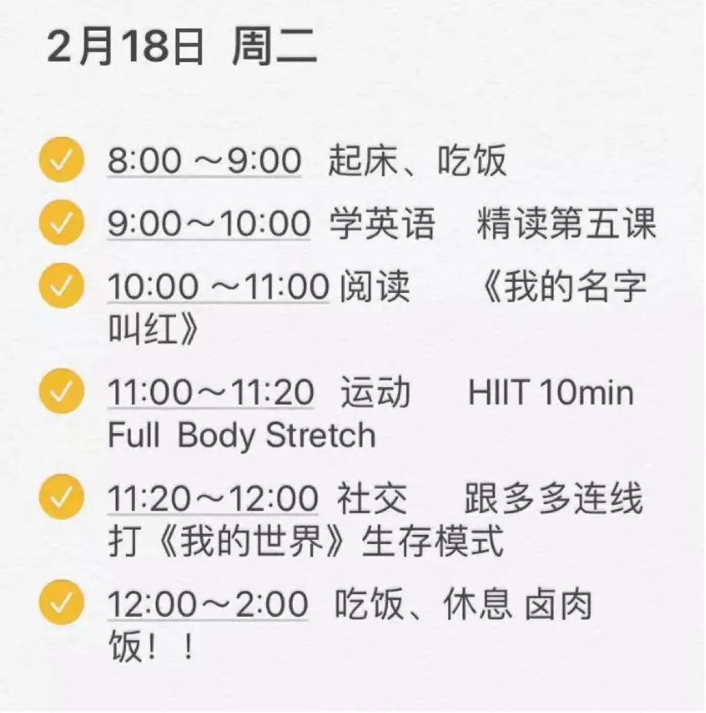 比如上图:9:00~10:00是学英语。后面说了是精读的第5课,计划到具体学什么。