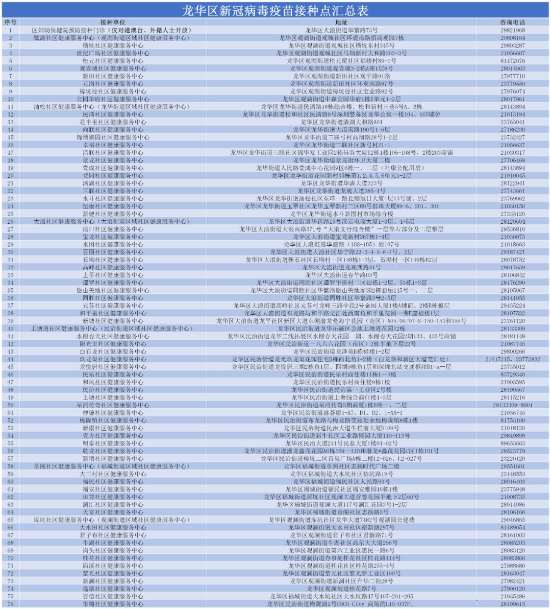 内容来源 | 深圳卫健委(公众号) 健康龙华(公众号) 龙华区各街道办