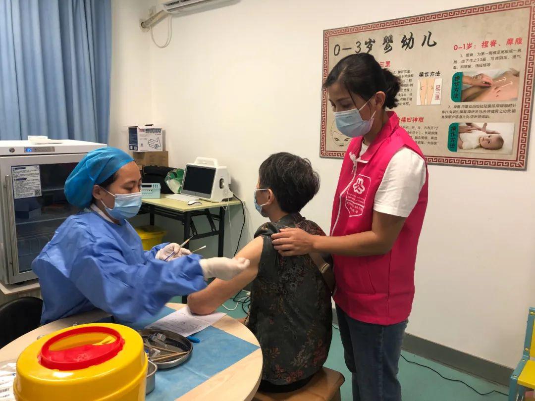 此外,观湖以“社工+义工”联动模式,组织长者志愿者服务队中的老党员、老医生、老劳模宣传发动身边的亲朋好友、邻里等积极接种疫苗。