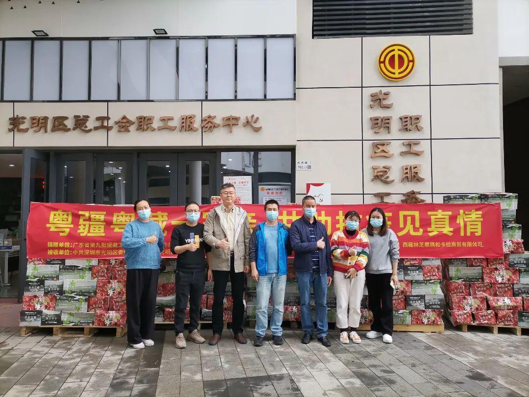 据悉,2021年以来,光明区总工会动员各级工会,通过消费扶贫等方式,积极采购西藏、新疆等地区特产,并与西藏察隅、新疆喀什等有关单位企业建立密切联系合作。此次爱心捐赠正是由广东省第九批援藏工作队察隅农场工作组、西藏林芝察隅县古玉乡镇府、深圳市光明消费帮扶中心(西藏馆)、新疆喀什大叔农业科技有限公司、西藏林芝察隅松卡拉商贸有限公司等发起,捐赠物品包括西藏青稞饼、奶贝,新疆喀什冰糖心苹果、大红枣等当地特产,价值21.22万元。