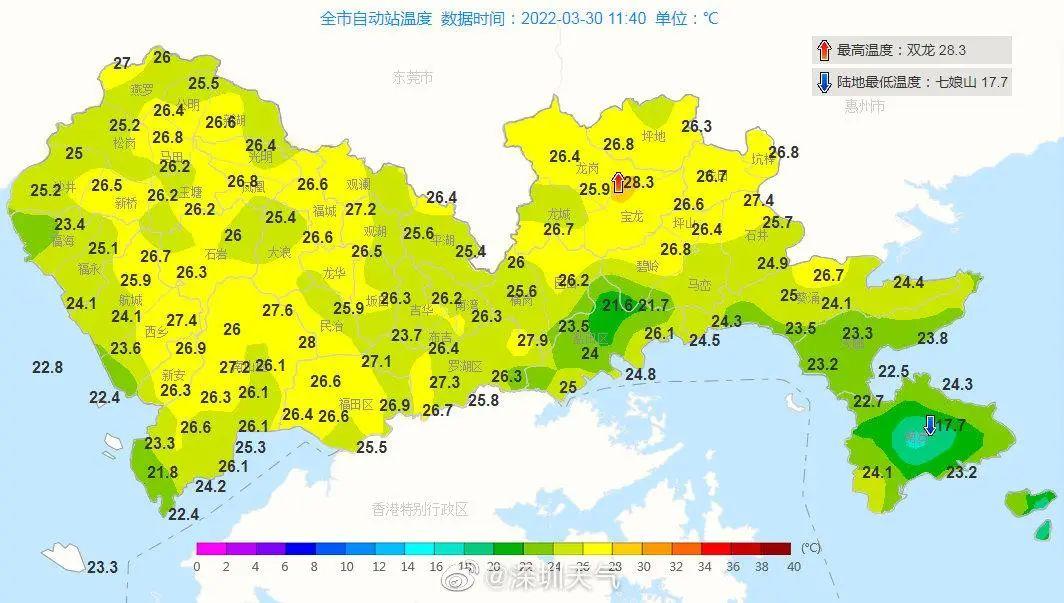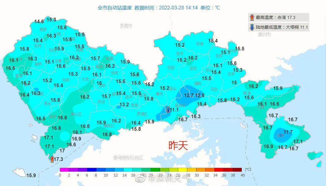 昨天的热已成过去,今天会继续“加热”。今早深圳气温跟昨天相比普遍升高了2℃左右,白天有阳光的“加持”,会比昨天更暖一些,有人的短袖要按捺不住了。