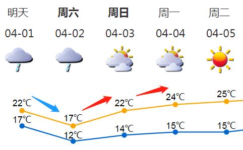 3、4月1-2日间中有阵雨,户外防疫注意做好防雨防风防雷和防寒保暖准备。