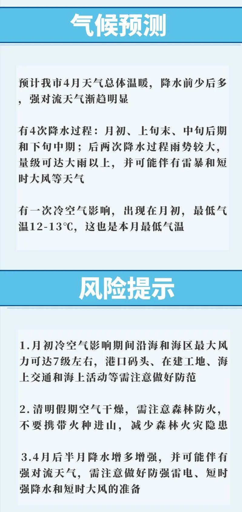 4、清明假期天气干燥,森林火险风险高,需注意户外及居家用火用电安全。