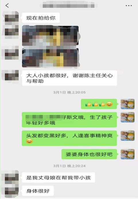 陈禄英主任立即中途下车折返医院和医院领导连夜拟出了“三区”的孕产妇建立“孕产妇关爱群”的线上咨询服务流程机制。