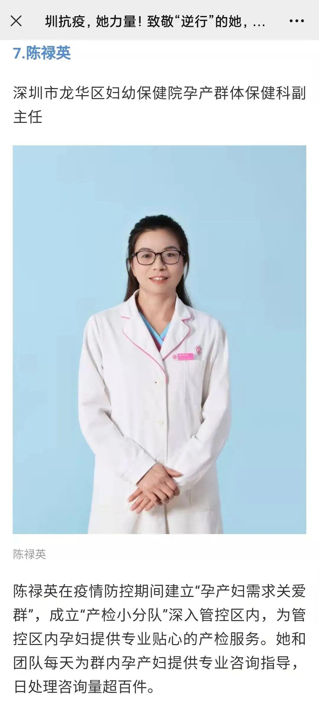 陈禄英说自己只是龙华妇幼众多医生的一个缩影。如果心中没有爱,对患者没有同理心,是很难持久的做好这份工作坚持到现在。